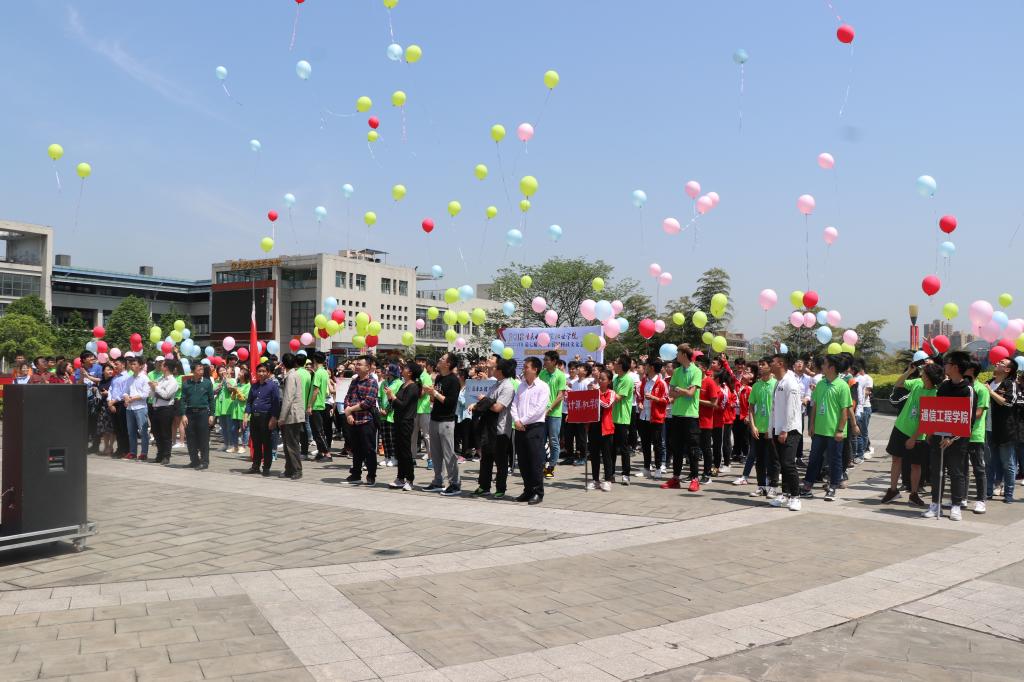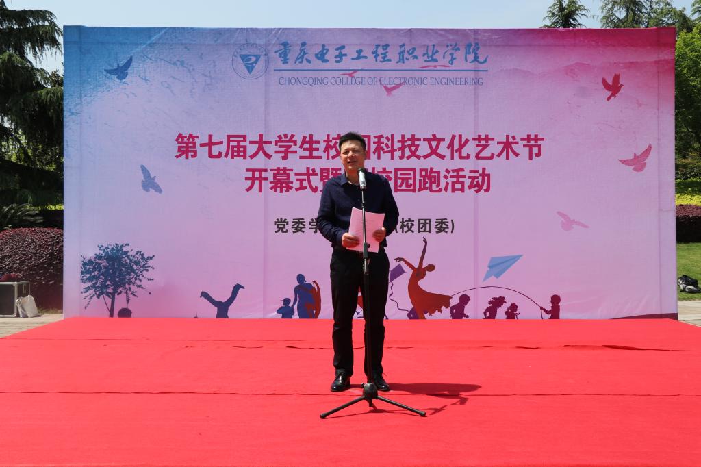2018年4月3日,由党委学生工作部(校团委)主办的第七届大学生校园科技文化艺术节暨环校园跑活动在学子广场顺利举行。校党委唐玉林副书记、党委学生工作部何光明部长、党委学生工作部蒋斌副部长、党委学生工作部副部长、校团委钟佐彬书记、通信工程学院黄正伟书记、软件学院王文书记、汽车工程学院张红斌书记、传媒艺术学院袁勇书记、管理学院廖坤科副书记、各二级学院的团总支书记和学生代表200余人参加开幕式。