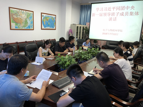 电子与物联网学院党总支书记张红斌教授组织全体辅导员以及部分团总支学生的主要干部就习近平同团中央新一届领导班子成员集体谈话进行了集中学习和谈论。并表示以后要牢牢把握坚持把培养社会主义建设者和接班人作为根本任务;把巩固和扩大党执政的青年群众基础作为政治责任;把最大多数青年紧紧凝聚在党的周围;把围绕中心、服务大局作为工作主线;切实做好我院共青团工作和青年教育工作。