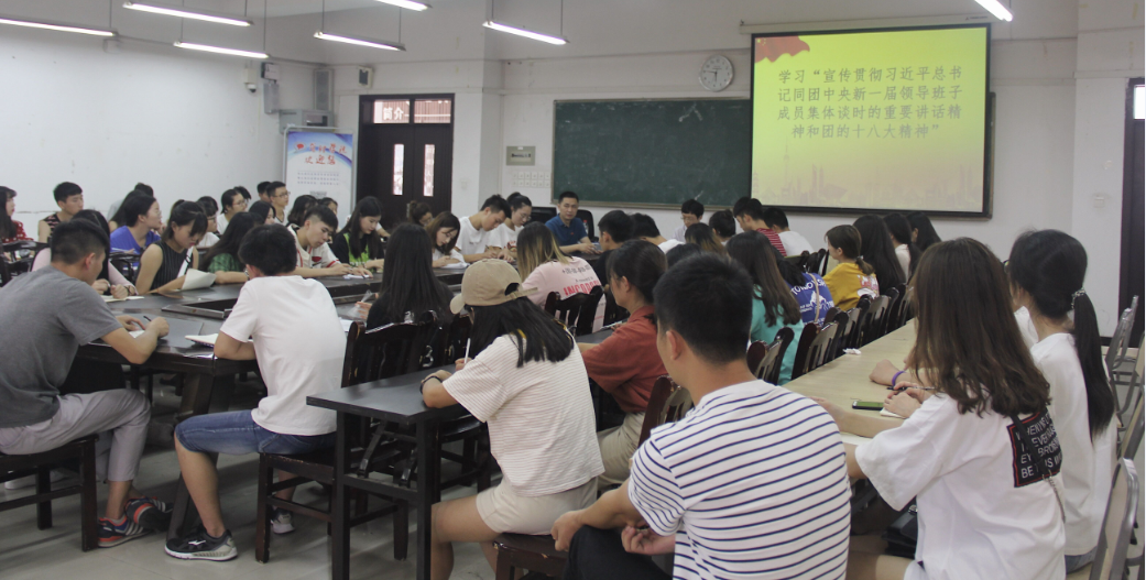 财经管理学院展开了学习“宣传贯彻习近平总书记同团中央新一届领导班子成员集体谈话时的重要讲话精神和团的十八大精神”的会议。会议强调了“深化共青团改革、落实从严治团”,并提出作为青年人的学生们,要牢记习近平总书记的殷殷嘱托,自觉把个人奋斗融入党和人民的共同奋斗中,敢于有梦、敢于追梦、勇于圆梦。