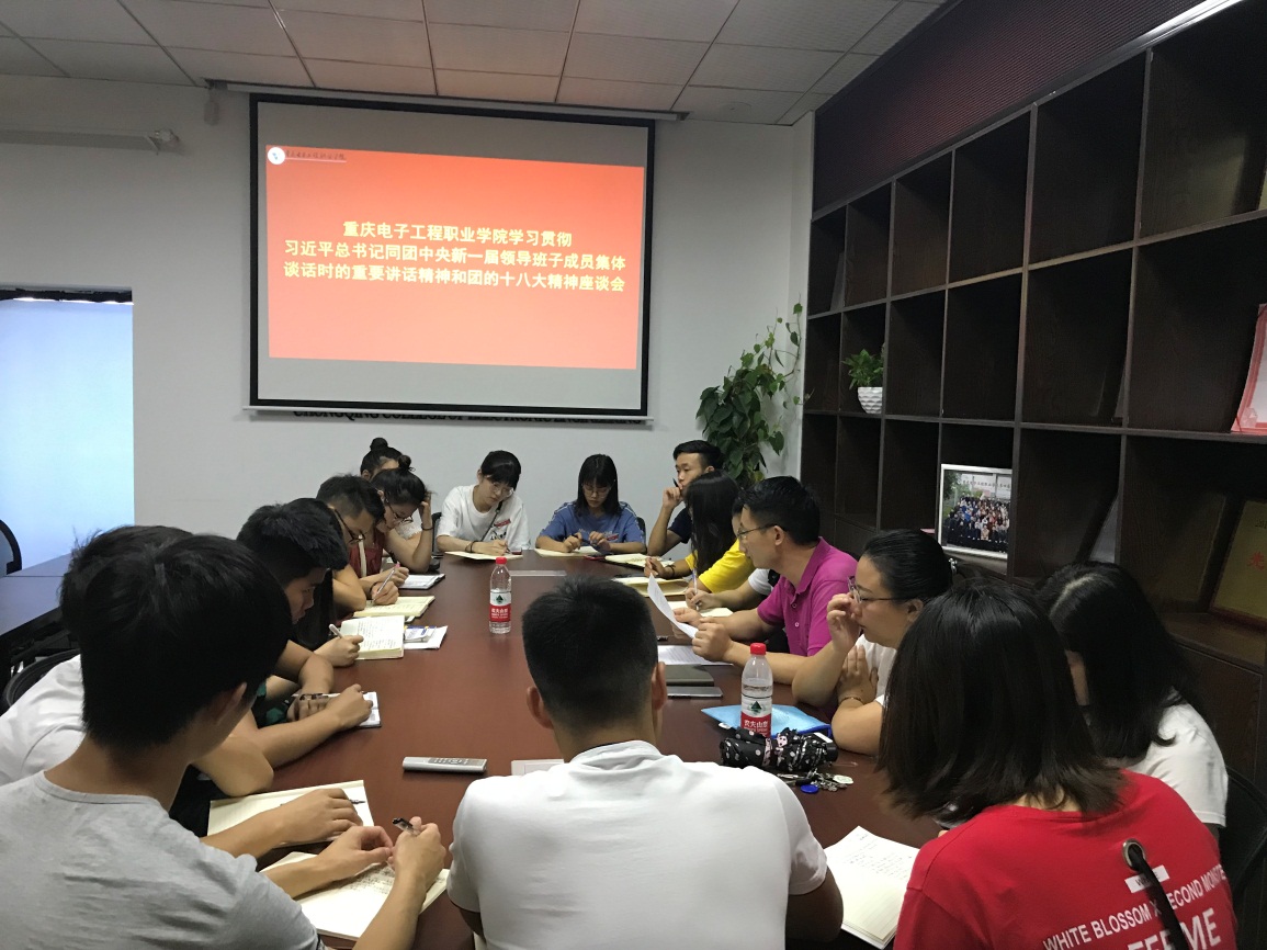 为响应共青团重庆市委的号召,深入学习宣传贯彻“习近平总书记同团中央新一届领导班子成员集体谈话时的重要讲话精神和团十八大精神”,重庆电子工程职业学院团委和各二级学院开展了相关的学习活动。