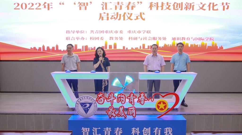 青春孕育无限希望,青年创造美好明天。为深学笃用习近平总书记关于科技创新的重要论述,为加快建设科技强国、实现高水平科技自立自强贡献青春力量。2022年5月25日,重庆电子工程职业学院2022年“‘智’汇青春”科技创新文化节启动仪式在学校博远厅顺利开展。团市委副书记黄永宜、重庆电子工程职业学院校长聂强、党委副书记龚小勇、副校长刘成俊出席启动仪式,团市委高校工作部、学校教务处、科研与社会服务处、通识教育与国际学院负责人、各二级学院党总支书记、团总支书记及来自学校各二级学院的各个创新团队成员参加了启动仪式。党委副书记龚小勇教授为活动致词。