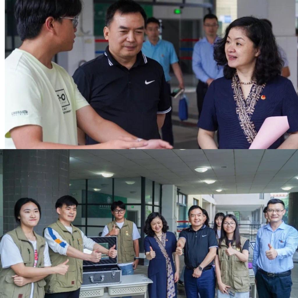 启动仪式结束后,永宜同志就大学生思想政治引领、科技创新、就业创业、团学改革等工作与学校校长聂强进行了深入交流。随后,聂强校长陪同永宜同志观摩了学校各个创新团队的科技创新优秀项目展览,与各团队成员亲切交流。