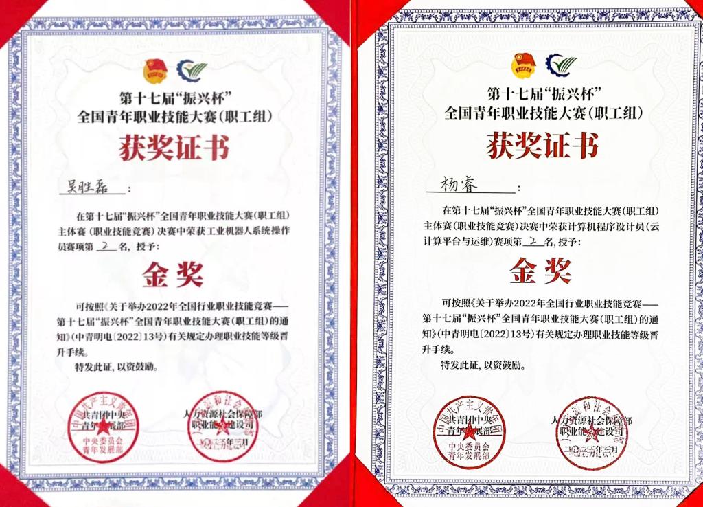 4月1日,由共青团中央、人力资源社会保障部主办的第十七届“振兴杯”全国青年职业技能大赛(职工组)决赛圆满收官,我校智能制造与汽车学院青年教师吴胜磊、人工智能与大数据学院青年教师杨睿在第十七届“振兴杯”全国青年职业技能大赛(职工组)中分别斩获工业机器人赛项、计算机程序设计员(云计算平台与运维)赛项金奖各一项。