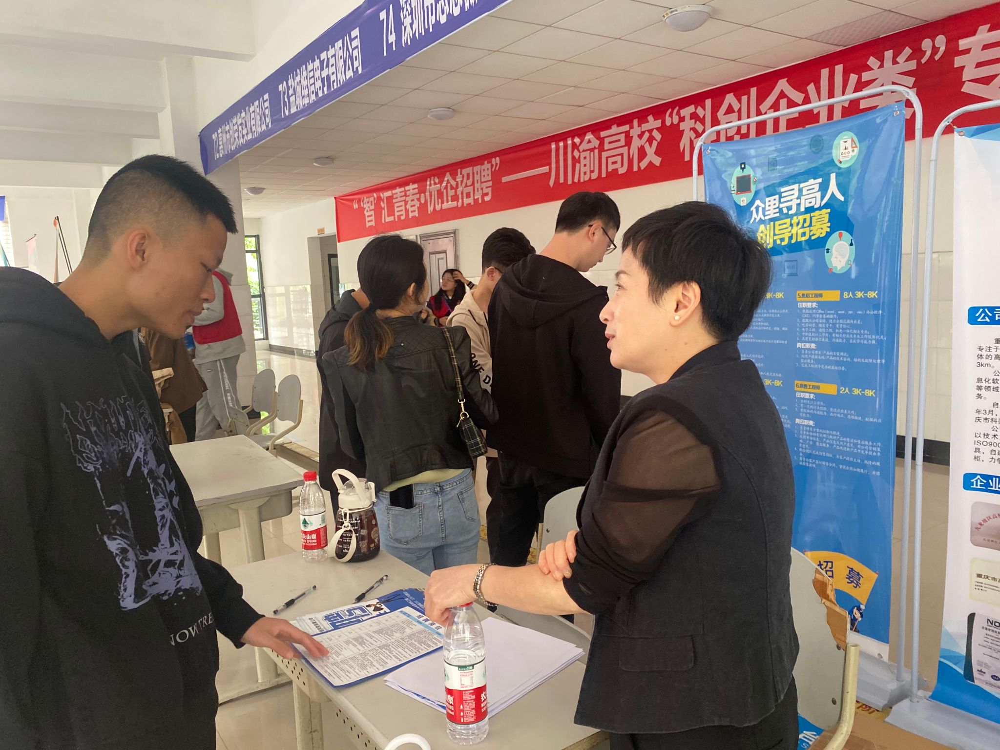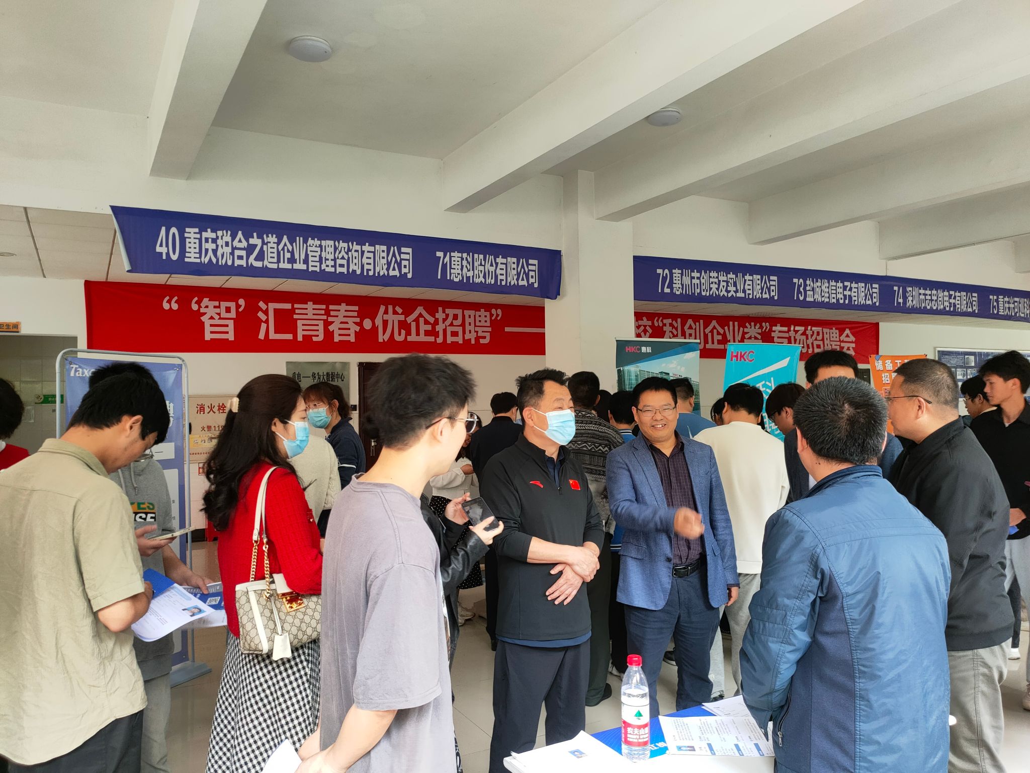 2023年5月11日,由市教委、市人社、团市委指导,重庆电子工程职业学院承办的“‘智’汇青春·优企招聘”——川渝高校“科创企业类”专场招聘会在学校3栋教学楼大厅顺利开展。本次招聘会邀请了惠科股份有限公司、重庆前卫科技集团有限公司、重庆京东方显示技术有限公司等75家企业参会,为2023届毕业生提供2500余个招聘岗位,总计1500余名毕业生参加。