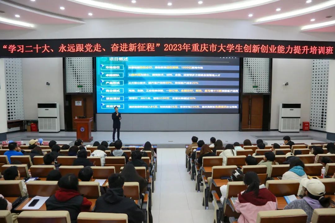 为深学笃行习近平新时代中国特色社会主义思想,贯彻落实习近平总书记关于青年工作的重要思想,培养更多具备创新创业意识、掌握创新创业能力、适应科技发展需求的大学生。2023年12月2日,市青年创新创业服务中心、市青年创新创业基金会、市青年创新创业促进会联合我校团委举办“学习二十大、永远跟党走、奋进新征程”2023年重庆市大学生创新创业能力提升培训班。本次培训采用线上+线下的方式进行,覆盖具有创新创业意愿的青年大学生近万人次。
