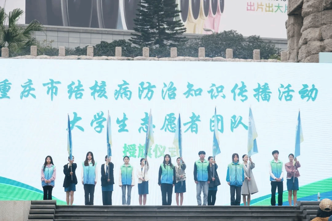 3月23日上午,2024年度“大学生志愿者团队结核病防治知识传播活动培育项目”团队授牌仪式在观音桥步行街举行,我校“微笑阳光”结核防治志愿服务队受邀参加本次活动。据悉,活动由重庆市卫健委、市疾控局、江北区人民政府主办。