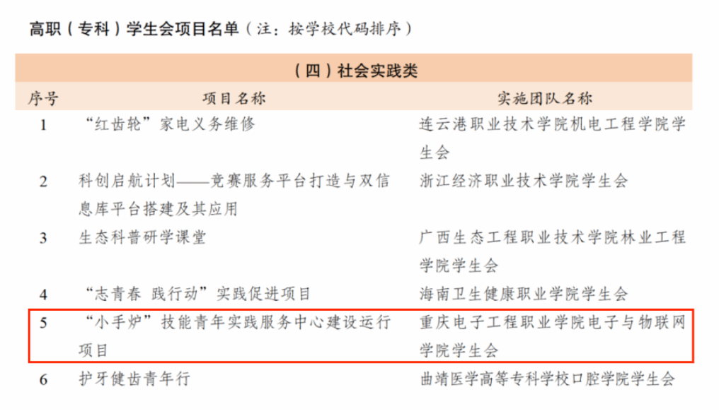 由共青团中央指导、全国学联主办、贵州省学联承办的全国高校学生会组织“我为同学做实事”项目交流展示活动启动以来,经学校自荐、省级推报、全国遴选,共产生高职(专科)学生会项目56个。我校电子与物联网学学生会着手的“小手炉”技能青年实践服务中心建设运行项目,入选社会实践类项目交流展示。