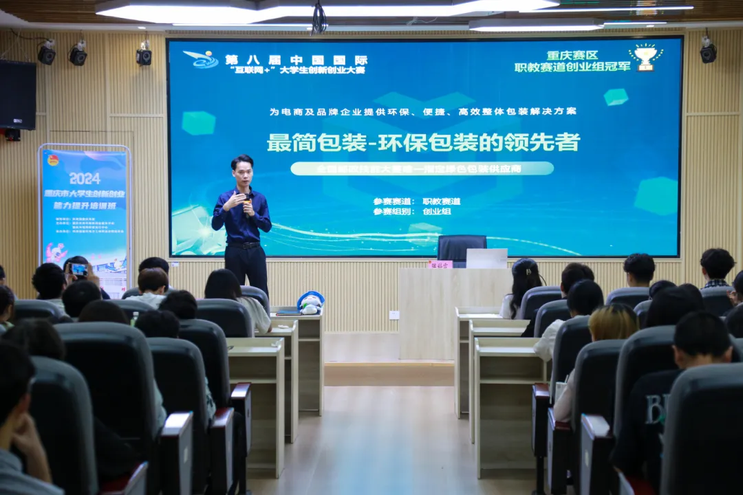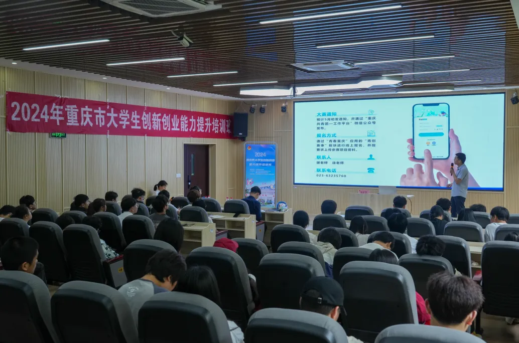 为积极响应国家关于青年创新创业的号召,更好引领青年学生积极融入“416”科技创新战略布局,助力“33618”现代制造业集群体系建设,激发大学生创新创业兴趣,促进高校毕业生就业创业,2024年5月10日,重庆市大学生创新创业能力提升培训班走进我校举行专场培训。此次培训班特邀优秀青年企业家及创业导师亲临授课,内容丰富,涵盖了创业经验分享、商业计划书撰写、福店创业计划以及"创青春"赛事辅导等多个方面,吸引了全校120余名学生参加。