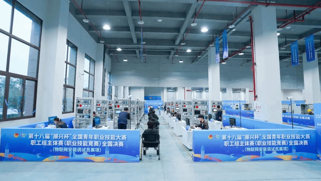 比赛以“踔厉奋发启新程 挺膺担当建新功”为主题,我校作为物联网安装调试员、机床装调维修工职业工种的主赛场,来自全国各地的400余名技能高手齐聚在此,以昂扬的精神面貌和精湛的技术水平,开展了一场精彩绝伦的技能较量。