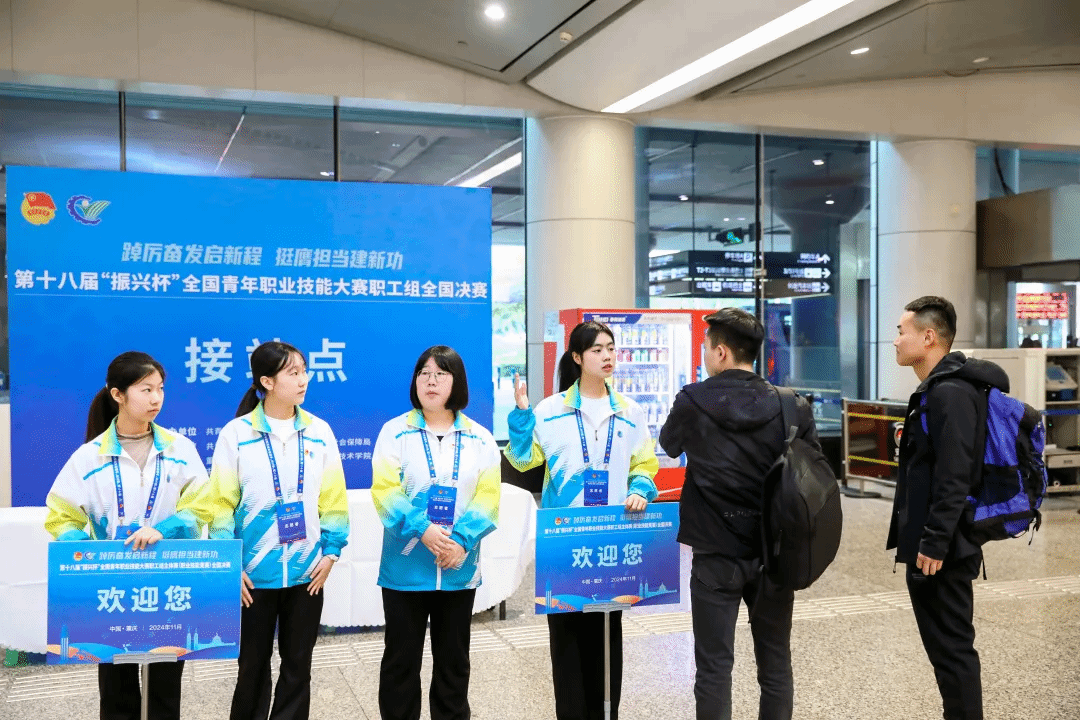 11月3日,来自各系统和中央企业的400名主体赛选手陆续抵渝。赛前,学校精心谋划招募志愿者参与全程服务保障工作,组织动员100余名教师、400余名学生志愿者参与到大赛的各项服务保障中。志愿者们在重庆市内“两站一场”耐心等待全国各地参赛选手的到来,让选手们第一时间感受到重庆专属的热情和温暖,同时在赛场、酒店为选手们提供赛事报到、物资发放、路线指引、入住办理、餐食配送、跟车服务、会议服务等志愿服务工作,我校志愿者们细致入微、贴心周到的服务得到了来自全国的领队、参赛选手们的一致好评,成为了大赛的一道靓丽风景线。
