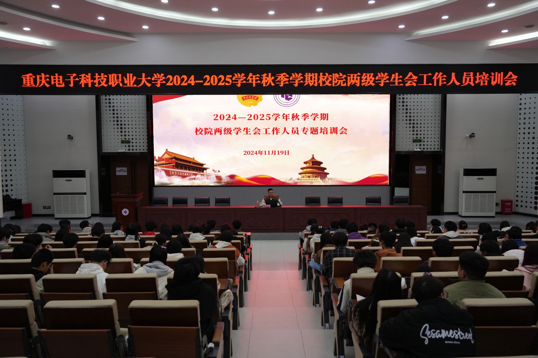 为深入学习贯彻党的二十大和二十届三中全会精神,贯彻落实习近平总书记关于青年工作的重要思想和习近平总书记视察重庆重要讲话重要指示精神,不断加强和改进新时代高校学生会工作,切实提升学生骨干个人素质能力。11月19日,重庆电子科技职业大学2024-2025秋季学期校院两级学生会工作人员培训会于博远厅开展。本次培训会由校团委兼职副书记、电子与物联网学院团总支书记聂浩虹老师和校团委老师唐吕俊驰主讲,校学生会、各二级学院学生会、社团工作人员共计200余人参加。