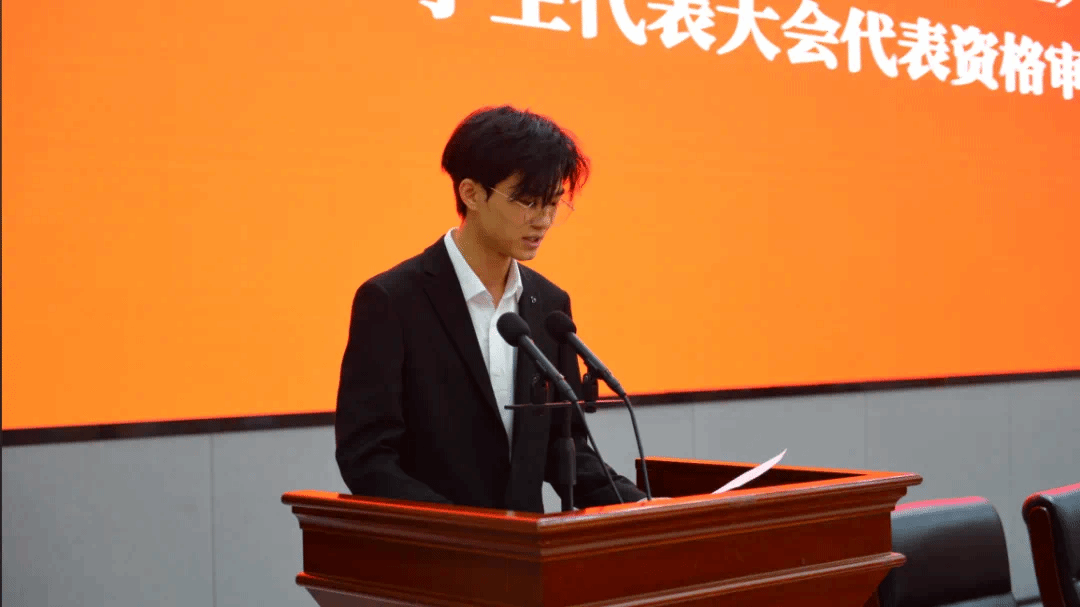 校学生会主席团成员曾泉程同学作《重庆电子科技职业大学第一次学生代表大会代表资格审查报告》