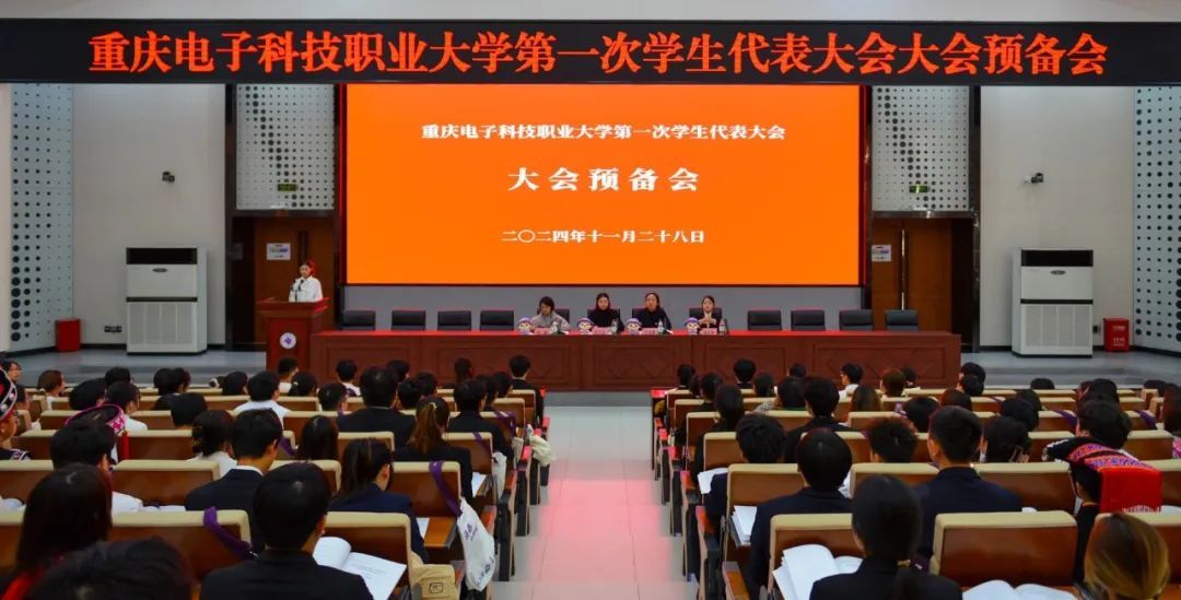 在11月28日的预备会上,校团委学生兼职副书记杨柠青作《重庆电子科技职业大学第一次学生代表大会筹备工作报告》,校学生会主席团成员曾泉程作《重庆电子科技职业大学第一次学生代表大会代表资格审查报告》。