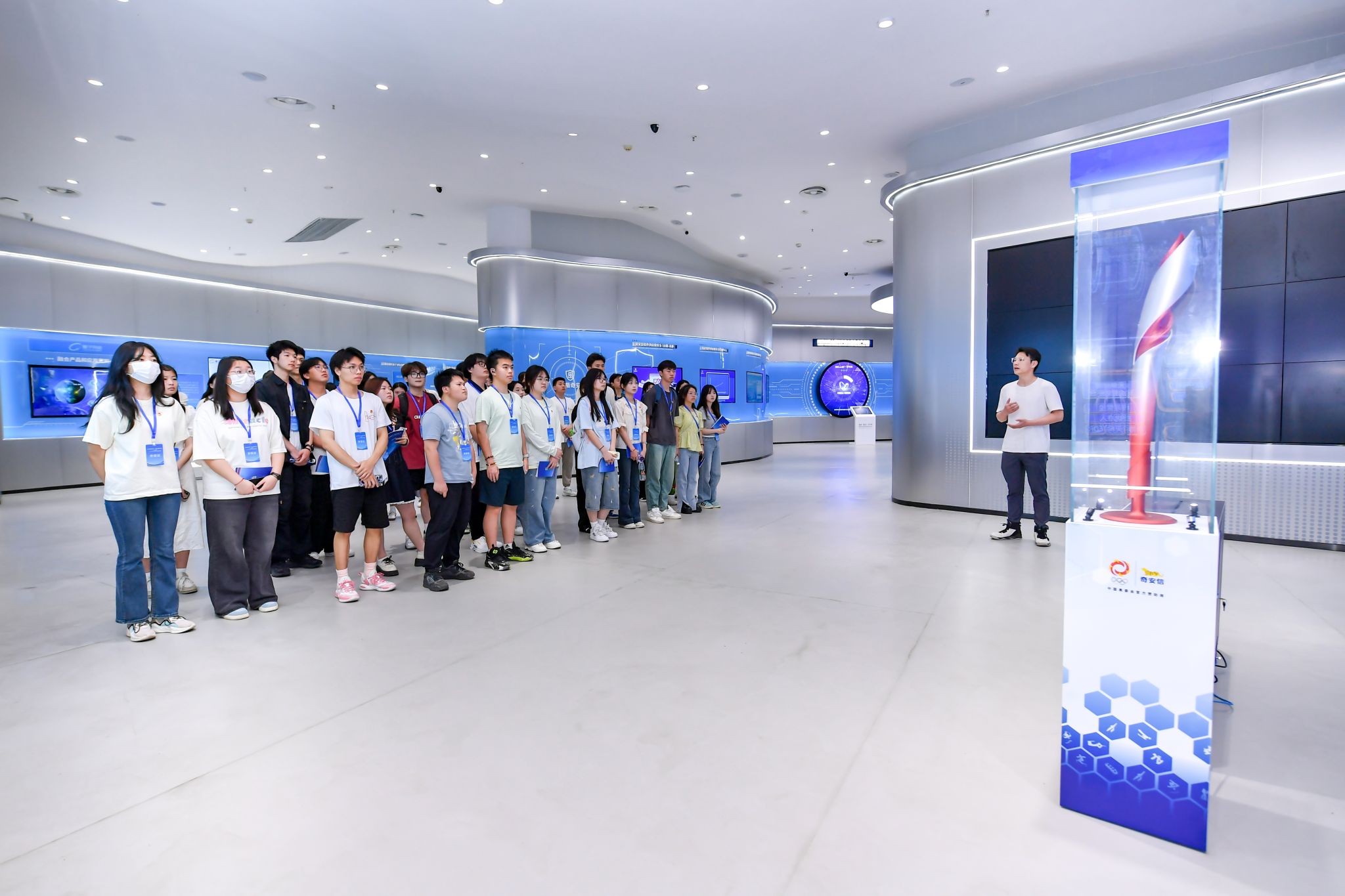 上午,在讲解员的带领下,大家先后参观了西部科学城璧山片区数字经济展示中心,触摸“智圆行方”六大展区里中科曙光、国科量子等47家企业的元宇宙与工业数字化成果;走进先进数据中心,见证每秒万亿次算力如何托举“东数西算”战略;探访弗迪锂电池万级无尘车间,感受100%自主研发的刀片电池如何定义全球新能源标准;驻足高新技术产业研究院,目睹800项高校专利蜕变为57个硬科技项目的破茧之路。当纳米级智造精度与“狱中八条”的精神刻度相遇,青年们深刻体悟:红岩精神正以代码与电流的形式,在新时代的科创战场上奔涌传承。
