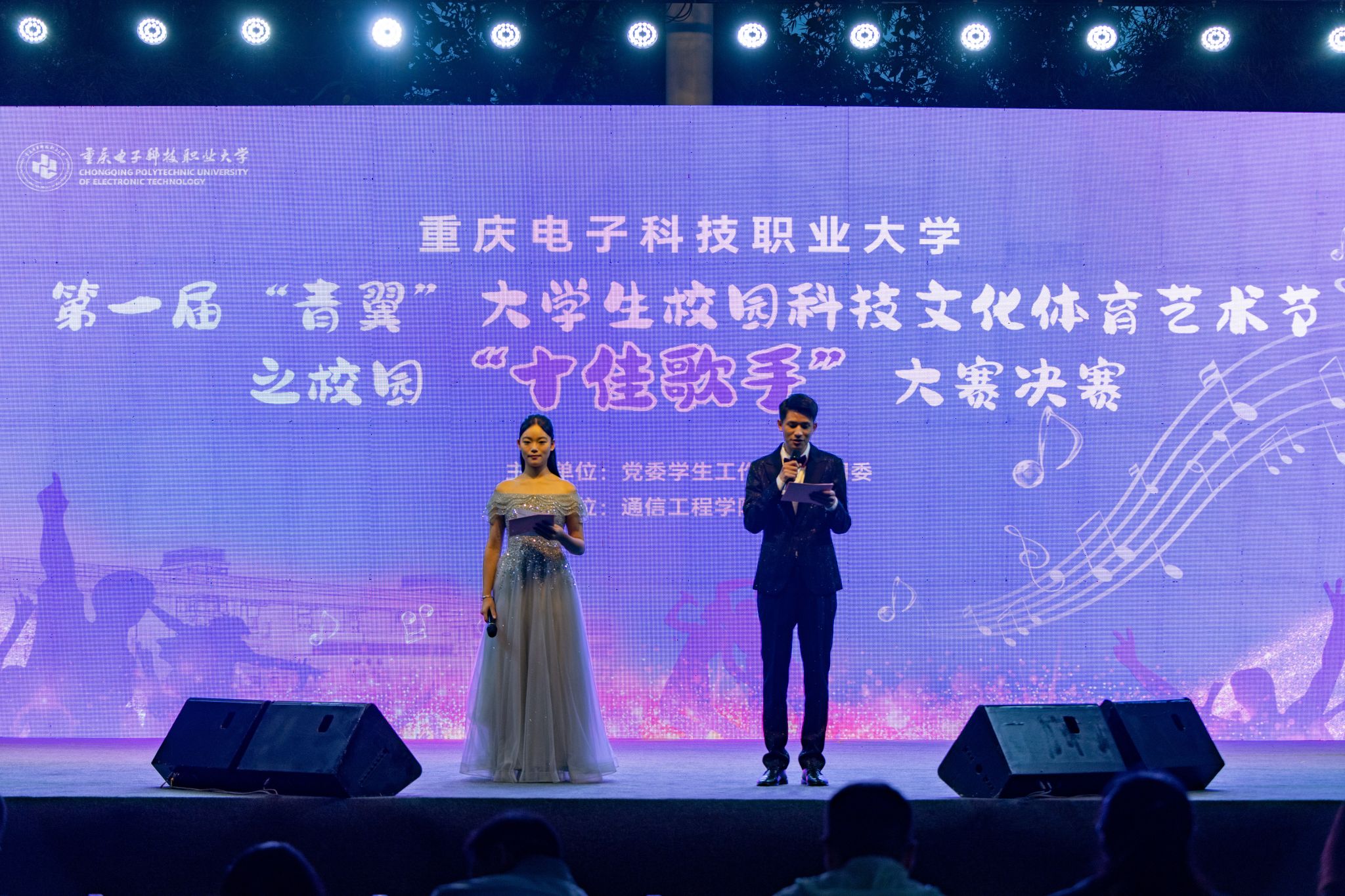 为深学笃用习近平新时代中国特色社会主义思想,全面贯彻落实党的二十大和党的二十届二中、三中全会精神,围绕落实立德树人根本任务,坚持将理想信念教育融入大学生校园科技文化艺术体育活动,着力培养德智体美劳全面发展的社会主义建设者和接班人,团结带领广大青年学生在实现中华民族伟大复兴的道路上展现青春风采、做出积极贡献。4月29日晚,由重庆电子科技职业大学党委学生工作部、团委主办,通信工程学院承办的第一届“青翼”大学生校园科技文化体育艺术节之校园“十佳歌手”大赛决赛在风雨篮球场举行。