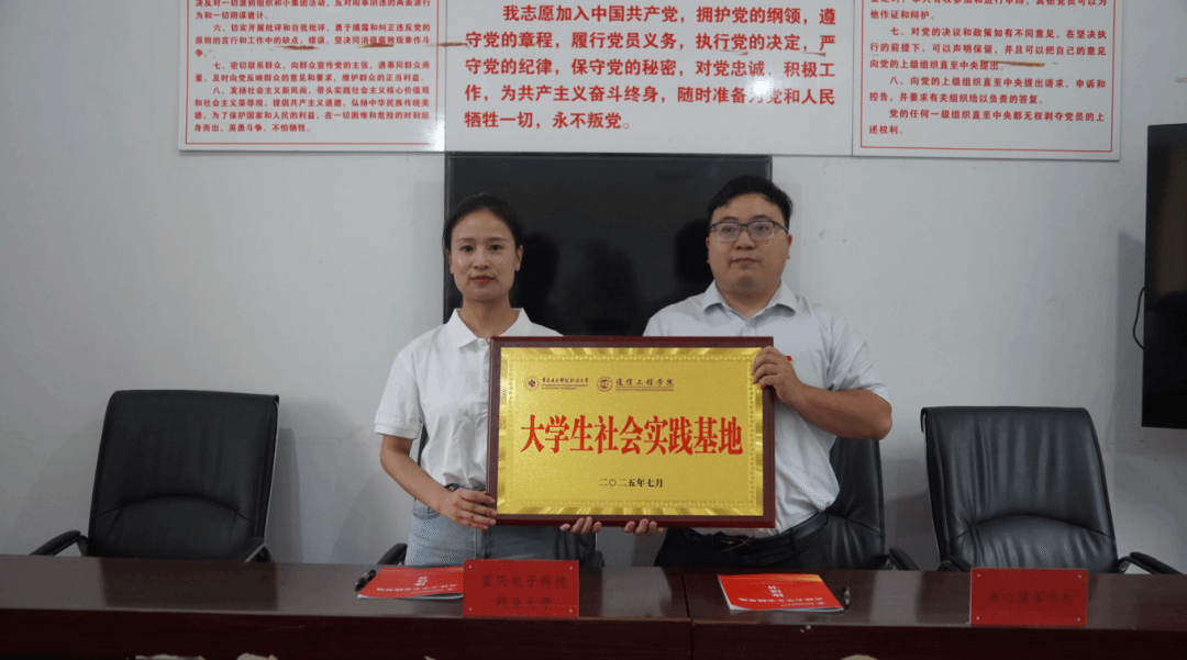 为引导青年学生在实践中了解国情、增长才干、服务社会,近日,重庆电子科技职业大学通信工程学院与潼南区米心镇苦竹村完成“大学生社会实践基地”签约授牌。通信工程学院团总支书记赵旭与驻村第一书记刘蓝阳参与揭牌仪式。未来,将在实践基地建设、志愿服务、技术帮扶等方面持续深耕,实现高校资源与地方发展的精准对焦。