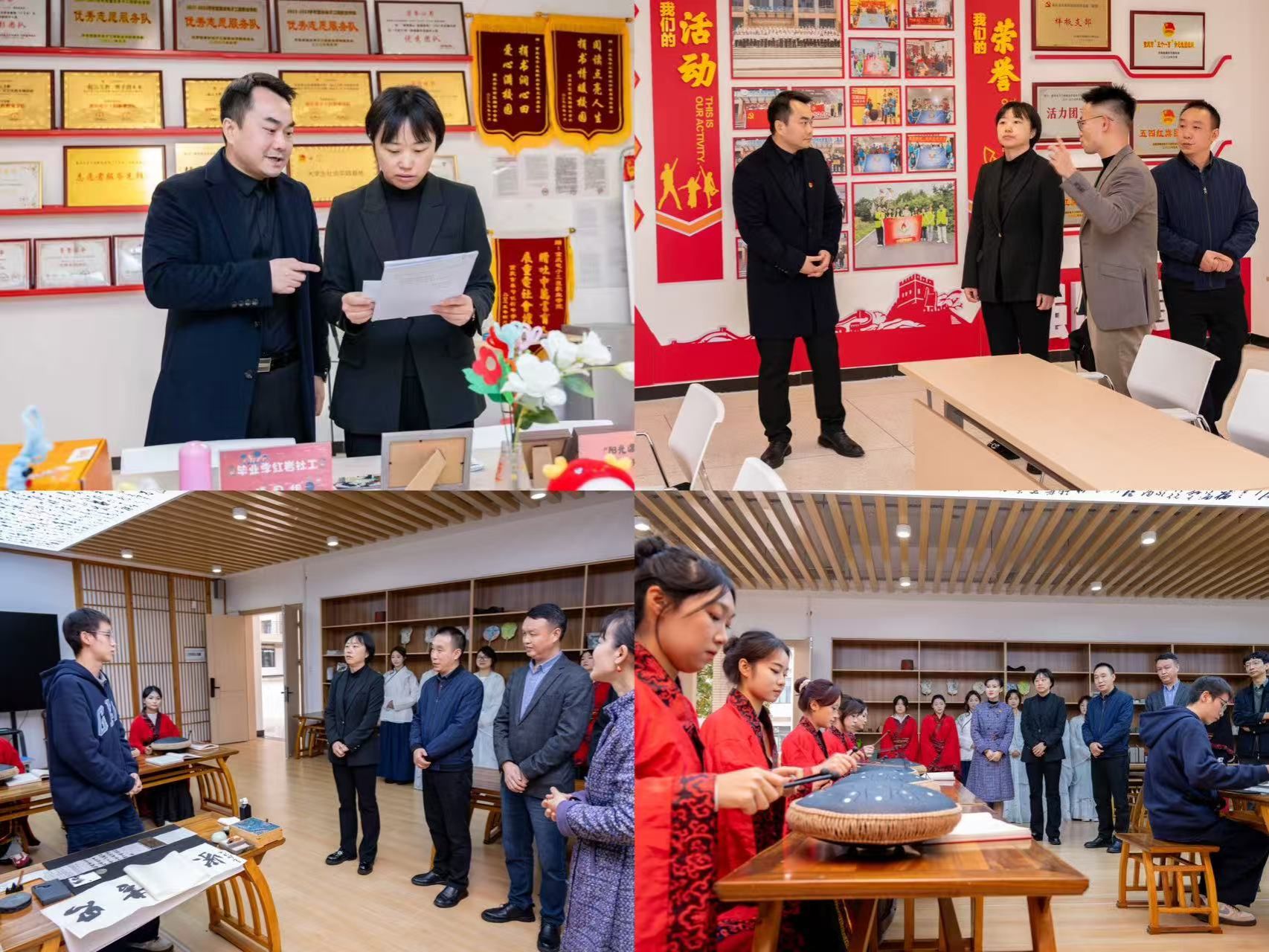 会后,调研组一行实地走访了电子与物联网学院小手炉学雷锋育人实践工作室和数字经济与管理学院六艺馆(六艺社团)。