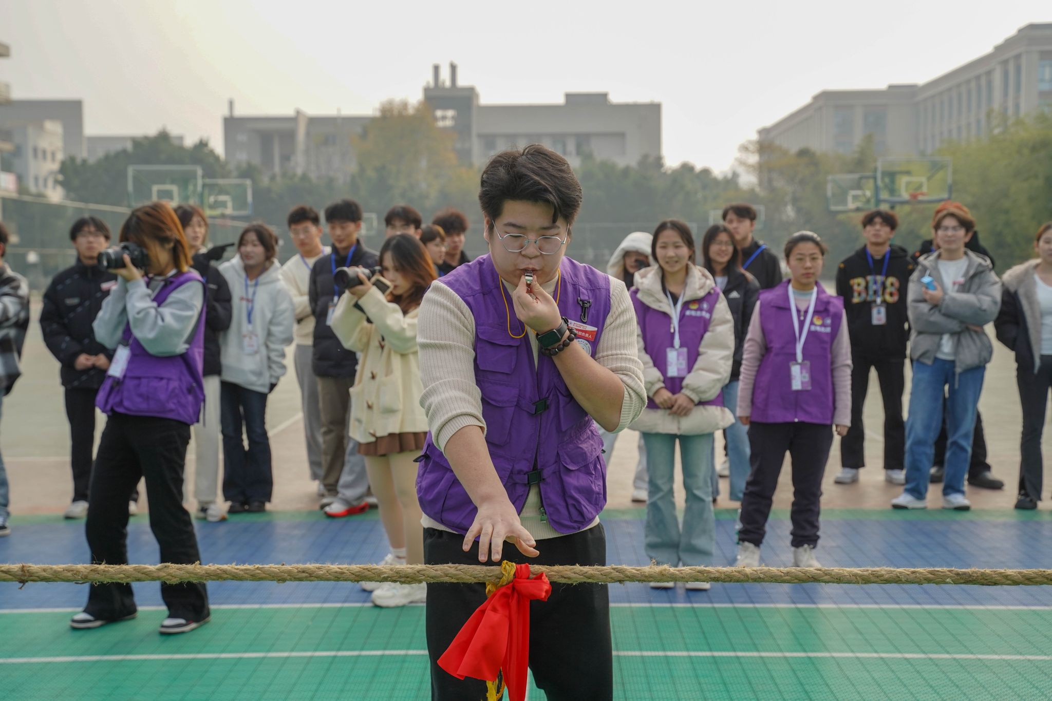 比赛采用三局两胜淘汰制,每支队伍由12名队员组成。随着哨声响起,比赛正式开始,粗绳紧绷成线,各参赛队员全力以赴、奋勇争先,或凭借韧劲实现逆风翻盘,或靠默契配合稳扎稳打,充分展现了重电学生会组织顽强拼搏的斗志与凝心聚力的团队风采。场外,观赛学生的呐喊助威声此起彼伏,为赛事增添热烈氛围。
