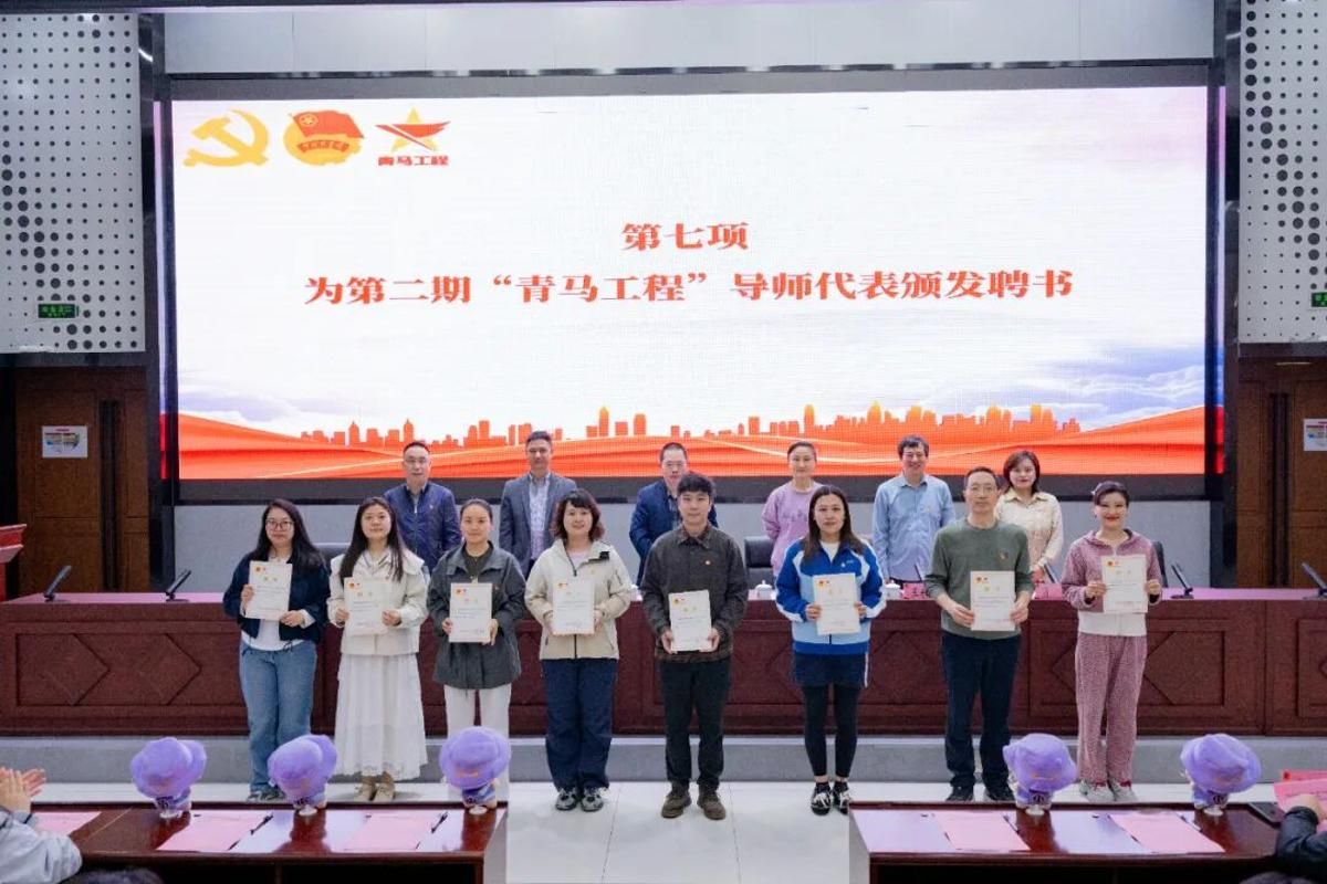 与会领导为第二期“青马工程”导师代表颁发聘书。