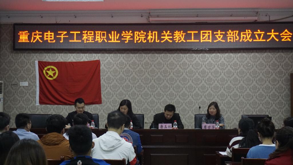 大会在庄严的国歌声中开始。首先廖世萍同志谈到近年来学校不断重视青年教师的发展和提升,希望青年教职工努力奋斗,为学校的发展贡献力量。之后,党委副书记唐玉林同志讲了四个方面的内容,一是学校党委高度重视青年工作,指出机关教工团支部成立的重要作用和意义;二是强调了共青团的工作要围绕强“三性”、去“四化”展开;三是要充分发挥好青年党员和团员两个身份的作用;四是希望青年教职工借助该平台共同成长成才,共建美丽的精神家园和青春家园。随后宣布重庆电子工程职业学院机关教工团支部正式成立并齐唱共青团团歌。最后进行了团支部委员的选举,根据差额选举及第一次支委会会议讨论结果,何宜儒同志担任机关教工团支部书记,任振林同志担任组织委员,刘欣蔚同志担任宣传委员。