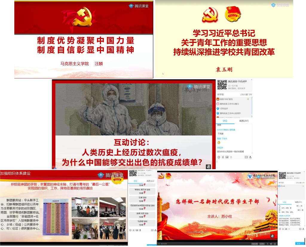 通过采用腾讯课堂线上授课的方式,重庆电子工程职业学院第十一期“青马工程”顺利开展。全国卫生计生系统先进工作者、“重庆好人”获评者、“榜样面对面”党的十九大精神沙坪坝区宣讲分团成员、沙坪坝区中西医结合医院院长杨强,马克思主义学院苏小柱教授、汪麟副教授,校团委书记袁玉刚、校团委彭婧老师,担任本次“青马工程”的授课老师。参与本次学习的学员为校院两级学生组织代表,共计300余人。