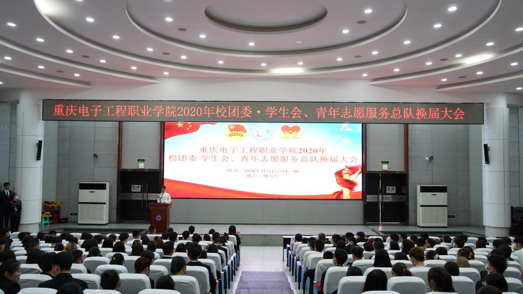 2020年11月13日下午,重庆电子工程职业学院2020年校团委·学生会、青年志愿服务总队换届大会在博远厅顺利举行。校团委老师、校团委·学生会、青年志愿服务总队学生负责人、各部门工作人员及学生代表,共计300余人参加。