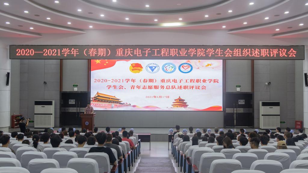 6月17日下午,校团委在博远厅举行2020—2021学年(春期)重庆电子工程职业学院学生会组织述职评议会。党委学生工作部副部长蒋斌,各二级学院团总支书记,校团委老师,述职学生骨干和学生代表共计200余人出席此次会议。此次会议由校团委书记、学生会秘书长袁玉刚主持。