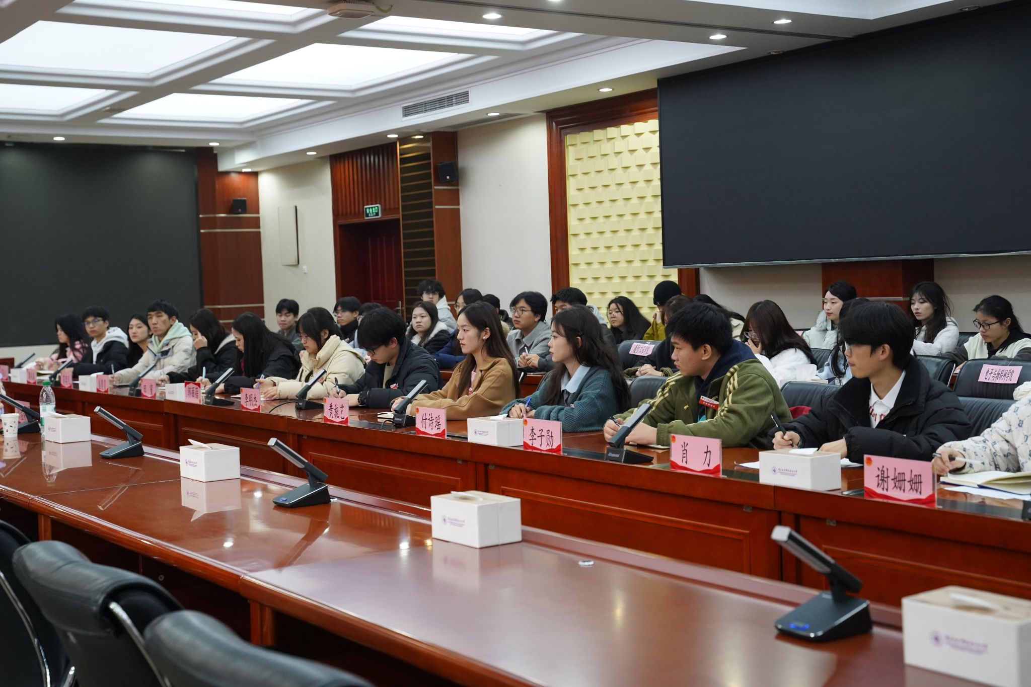 为全面贯彻落实党的二十届四中全会精神和全国学联第二十八次代表大会精神,强化校院两级学生组织联动,凝聚学生组织工作力量,推动学生工作高质量发展,2025年12月8日,学校2025-2026学年校院两级学生组织主要负责人座谈会在博润厅顺利举行,校团委书记钟佐彬、校团委·学生会主席团与各二级学院学生会主席团全体成员参加座谈会。