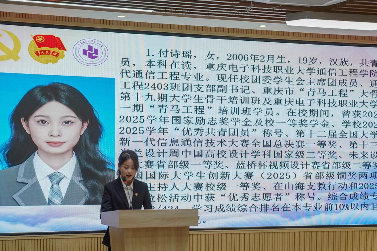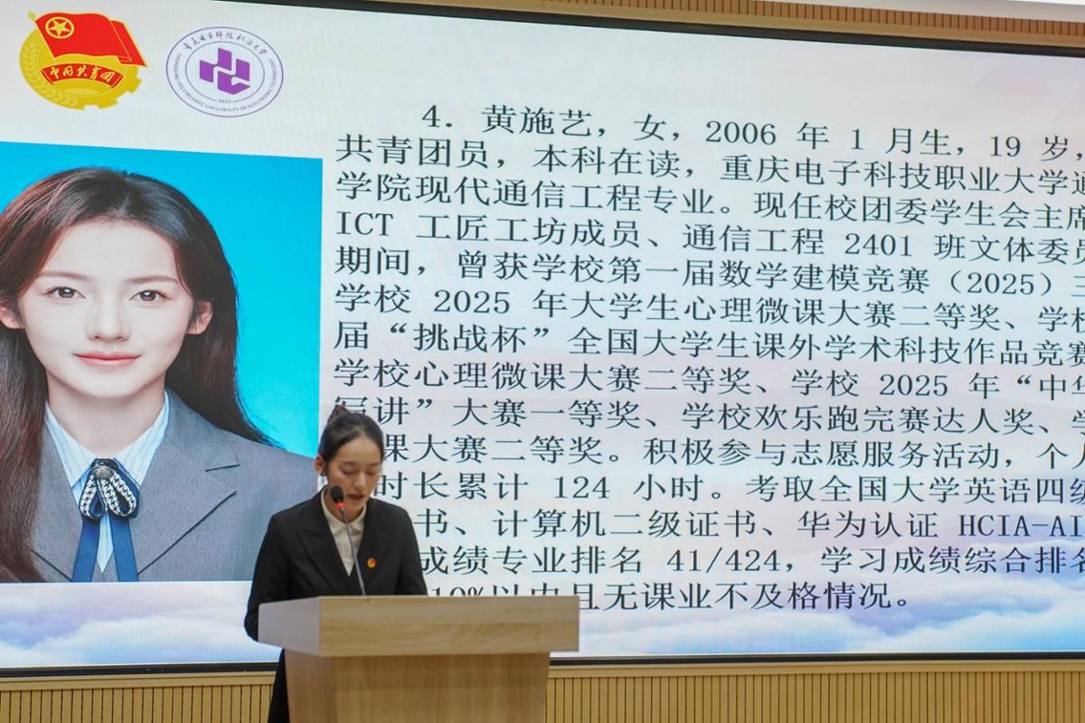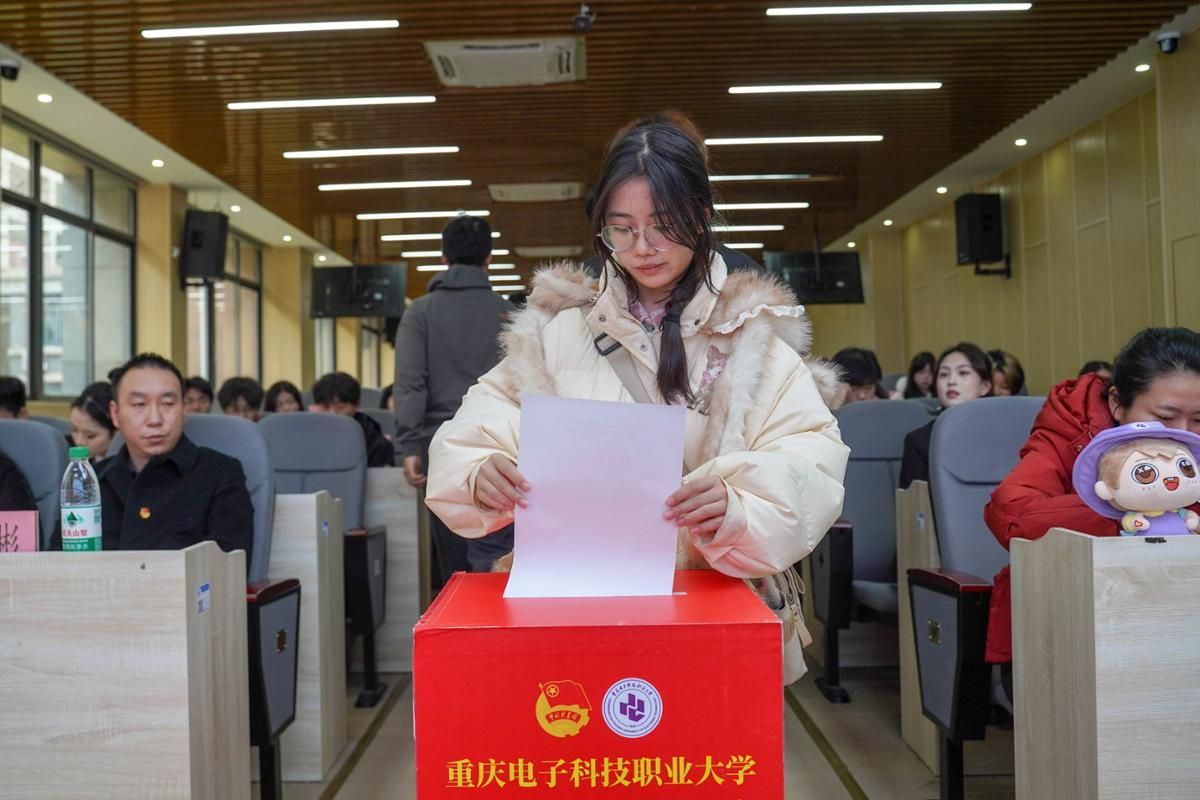 为深入贯彻落实共青团中央、教育部、全国学联印发的《关于推动高校学生会(研究生会)深化改革的若干意见》及《关于进一步加强高校团支部建设的实施方案》等文件精神,切实加强我校学生会团组织建设,强化共青团对学生组织的政治引领,全面提升共青团的引领力、组织力、服务力及大局贡献度,2025年12月26日,重庆电子科技职业大学校学生会第二届功能型团支部换届选举大会在智联楼A106多功能会议室顺利召开。校团委书记钟佐彬老师、校团委全体专职干部及学生团员代表共计30余人参会。