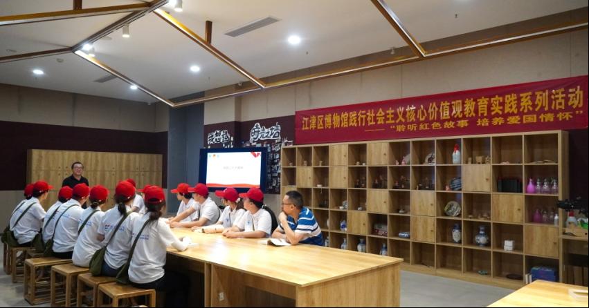 在调研过程中,实践团成员们在马克思主义学院教师郭峰的带领下,在江津博物馆党员活动室开展发展成就理论宣讲。