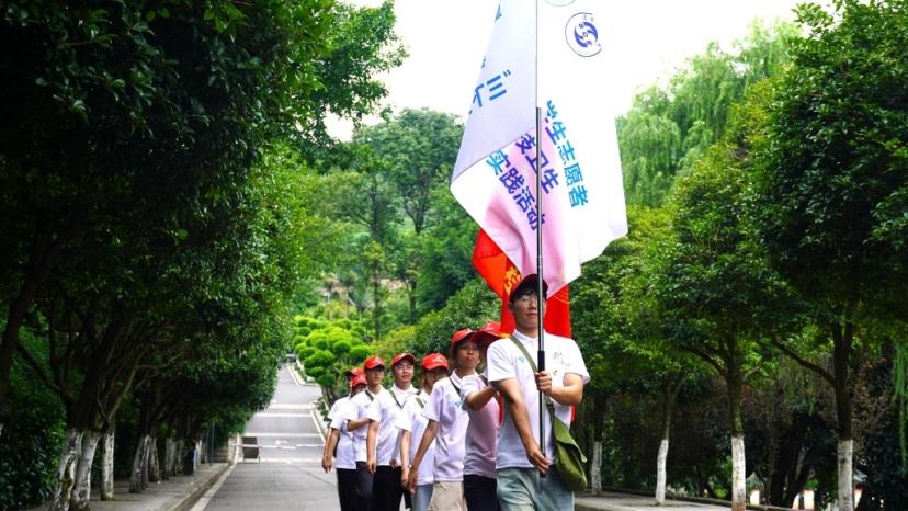 “我志愿加入中国共产党,拥护党的纲领,遵守党的章程,履行党员义务……”顶着炙热的阳光,在江津聂荣臻元帅陈列馆门前,面向聂荣臻元帅的雕像和鲜红的党旗,实践团成员们在马克思主义学院教师彭镜的带领下高举右拳许下铮铮誓言。