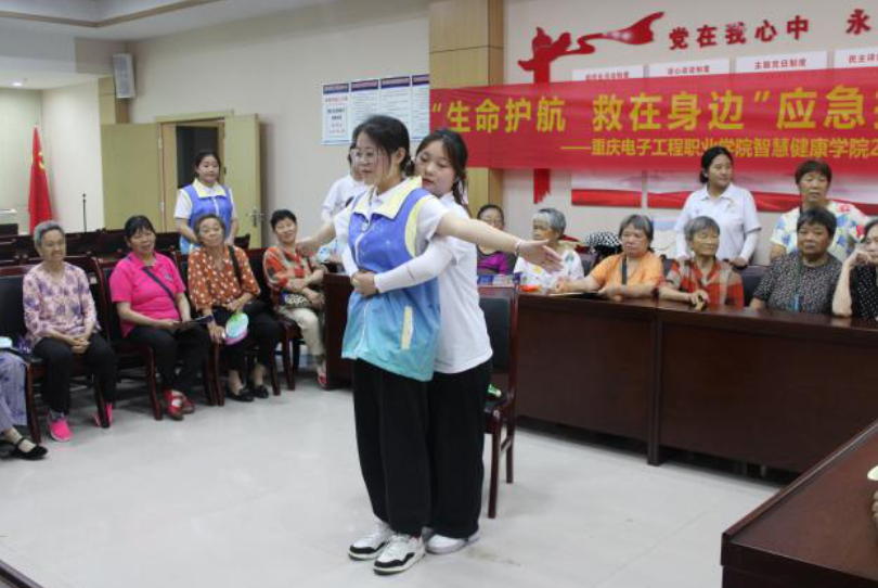 在实践团开展的“生命护航,救在身边”主题应急技能培训活动中,志愿者采用理论知识讲解和实际操作的方式,向社区老年人和儿童讲解了“心肺复苏术”和“海姆立克急救法”的操作步骤。社区“一老一小”通过听、看、练的方式,在“沉浸式”生命安全教育课中增长了应急救护知识,学会了应急救护技能,增强了安全意识和应急应变能力。