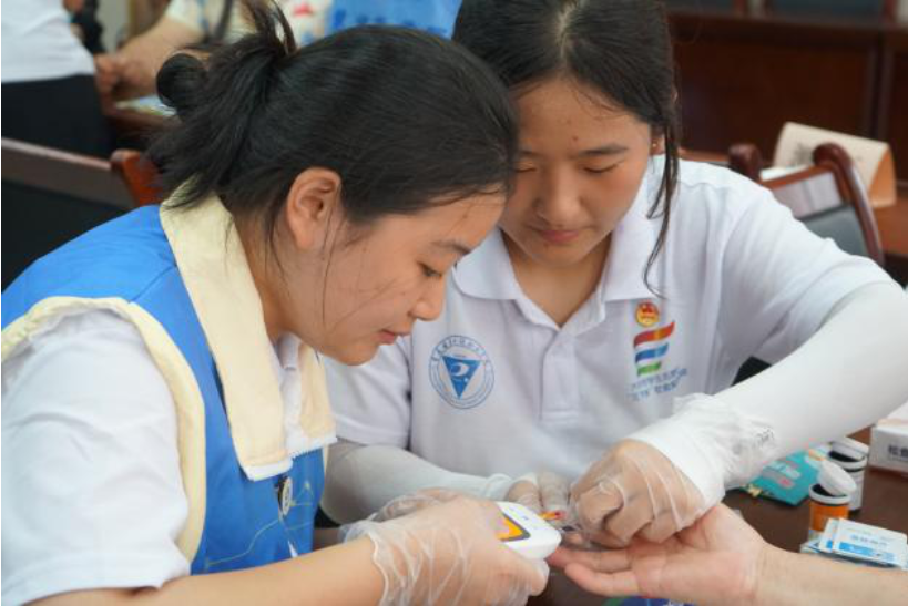 实践团开展了关爱老年人志愿服务活动,详细了解老年人的生活和身体状况,并细心地为老人们做了血压、血糖、尿酸监测,同时针对食品安全、日常膳食、运动锻炼、科学用药、慢性病防治等方面进行科普讲解,将健康服务送到群众“家门口”。