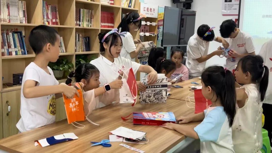 活动中,智绘梦之队还开展了以“播撒绿色新希望,争做环保小卫士”为主题的绿色小课堂。实践团队员将“理念宣讲+变废为宝手工制作+社区垃圾清扫”3种方式融为一体,引导小朋友们从自身做起,关心环境,保护自然,树立废物循环利用的观念,以实际行动锻炼劳动能力,共同为构建绿色家园贡献力量。