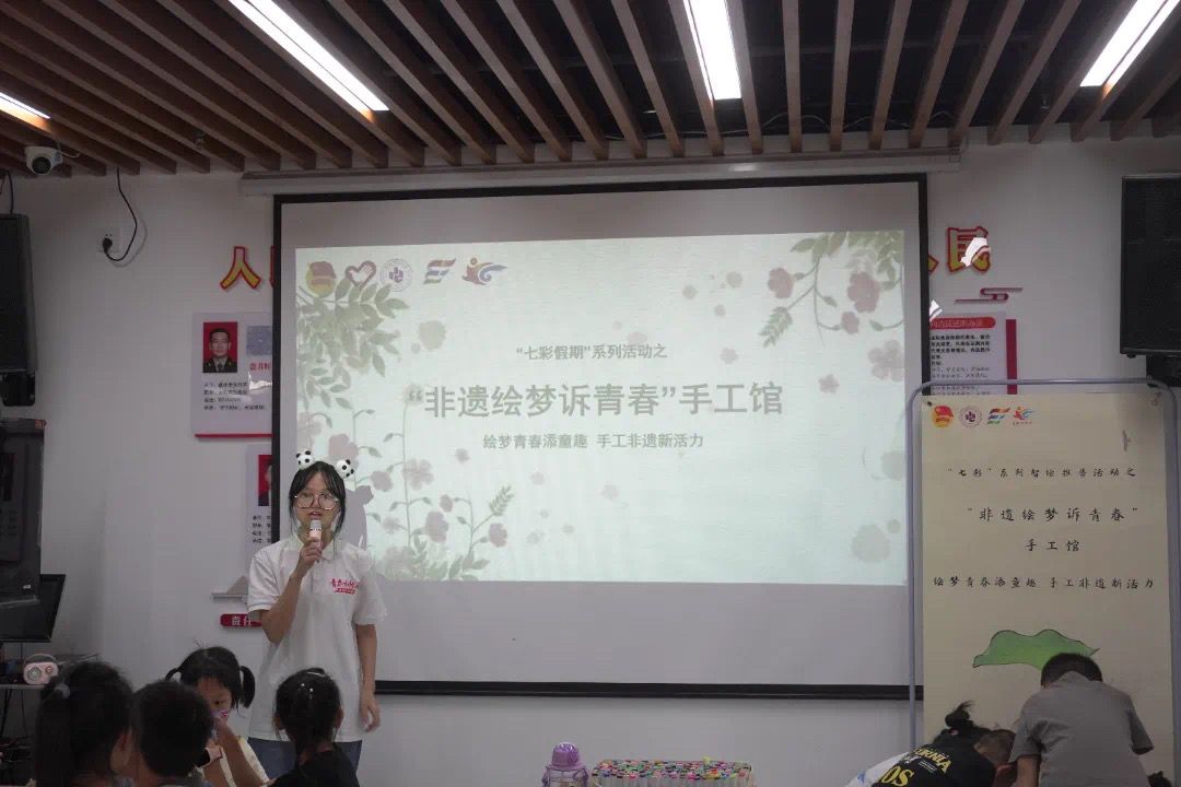 在红河路社区,智绘梦之队以“绘梦青春添童趣,手工非遗新活力”为主题,精心组织了一场别开生面的非物质文化遗产手工小课堂。实践团队员引领小朋友们走进非物质文化遗产的瑰丽世界,教他们动手制作三月鼓、漆扇、脸谱等具有代表性的非物质文化遗产手工艺品。不仅加深了孩子们对传统文化内涵的领悟,更在动手实践中培育了孩子们的审美能力,为美育的内涵赋予了新的深度。