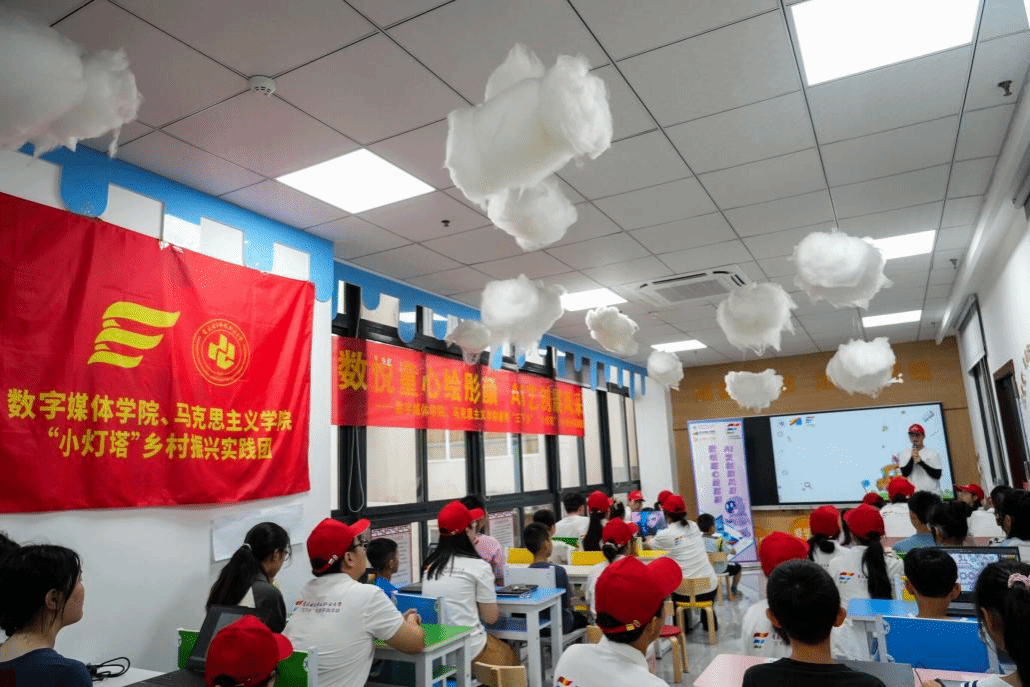 2024年7月3日,重庆电子科技职业大学数字媒体学院、马克思主义学院暑期“三下乡”社会实践“小灯塔”乡村振兴实践团在重庆市江津区双福街道怡云社区开展“数悦童心绘彤颜,AI艺创展风采”主题活动,以科技与艺术的深度融合,培养青少年的数字素养和创新能力,以科技力量推动乡村振兴。