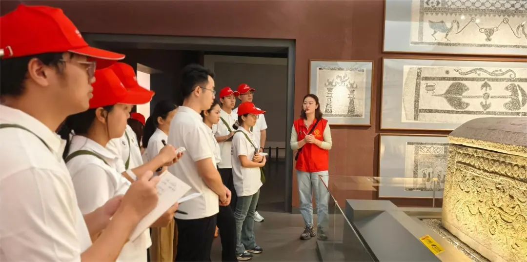 实践团成员在此开展“场馆里的思政课”,创新传播方式,以“文物青年说”的方式触摸历史文脉——汉代画像石棺,让大家感受中华文化的魅力,激发大家的民族自豪感和自信心,坚定文化自信,厚植爱国情怀。