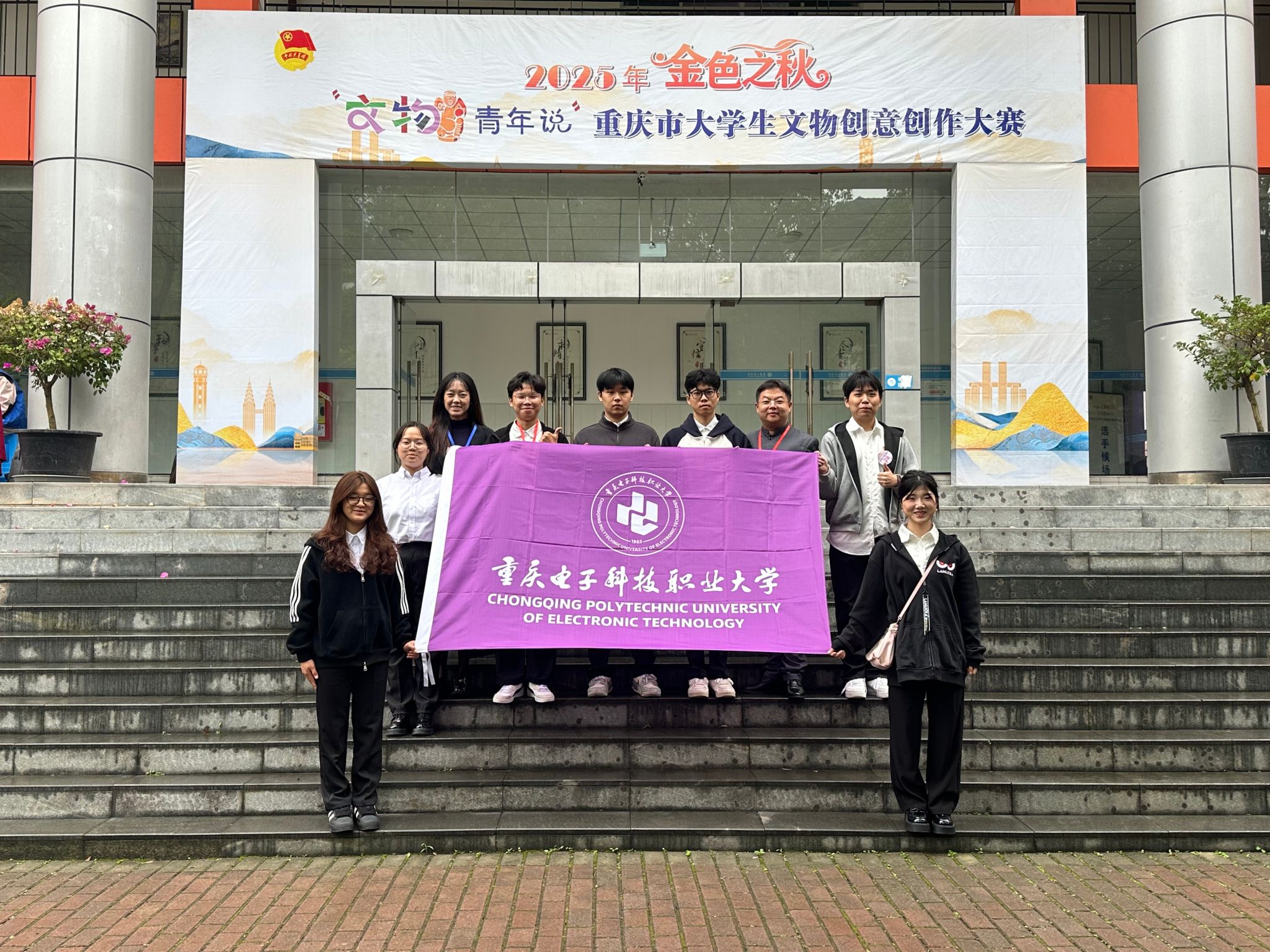 11月14日,由重庆市教育委员会、共青团重庆市委员会、重庆市科学技术协会、重庆市学生联合会、重庆中国三峡博物馆、共青团重庆工程学院委员会联合主办的2025年“金色之秋”重庆市大中专学生展示交流活动之“文物青年说”重庆市大学生文物创意创作大赛于重庆工程学院(南泉校区)顺利举行。比赛汇聚重庆大学、西南大学、四川美术学院等48所高校851件参赛作品,重庆电子科技职业大学8项作品入围决赛,最终获得二等奖4项、三等奖4项。