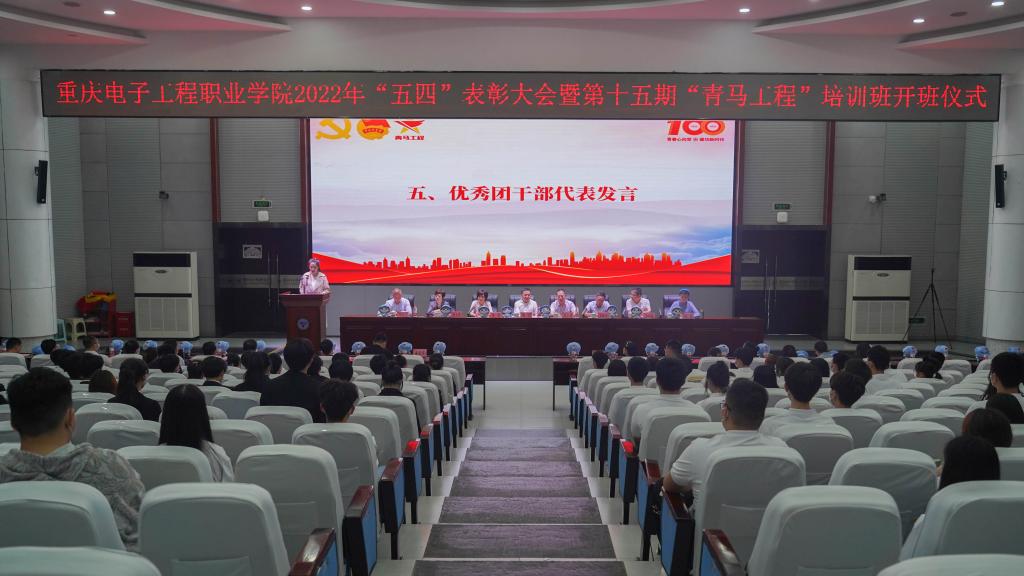 4月29日下午,我校在博远厅举办了重庆电子工程职业学院2022年“喜迎二十大、永远跟党走、奋进新征程”“五四”表彰大会暨第十五期“青马工程”培训班开班仪式。党委副书记、校长聂强,党委副书记龚小勇,党委委员、纪委书记陈丽,副校长刘成俊,党委委员、副校长谢义华,党委委员、副校长冉学农,党委委员、党委组织统战部部长刘洪光,党委委员、党委宣传部部长疏勤以及党政办公室、党委教师工作部、党委学生工作部负责人,各二级学院党总支书记、团总支书记出席会议,团委全体人员、各级团学组织优秀师生代表参加此次活动。会议由副校长冉学农主持。