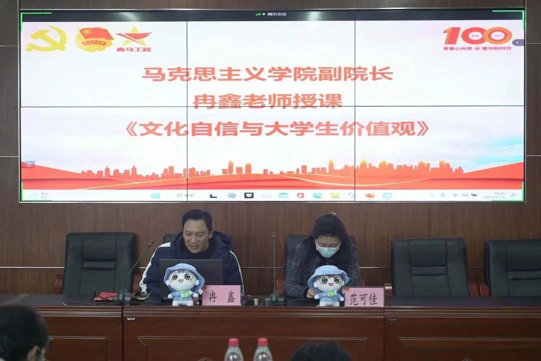 马克思主义学院党总支副书记、副院长冉鑫教授以《思想的伟力——文化自信与大学生价值观》为题,从文化的重要性、中华传统文化的精髓等方面,勉励青马班学员们要做善于学习、敢于思辨、踏实肯干的青年学生。