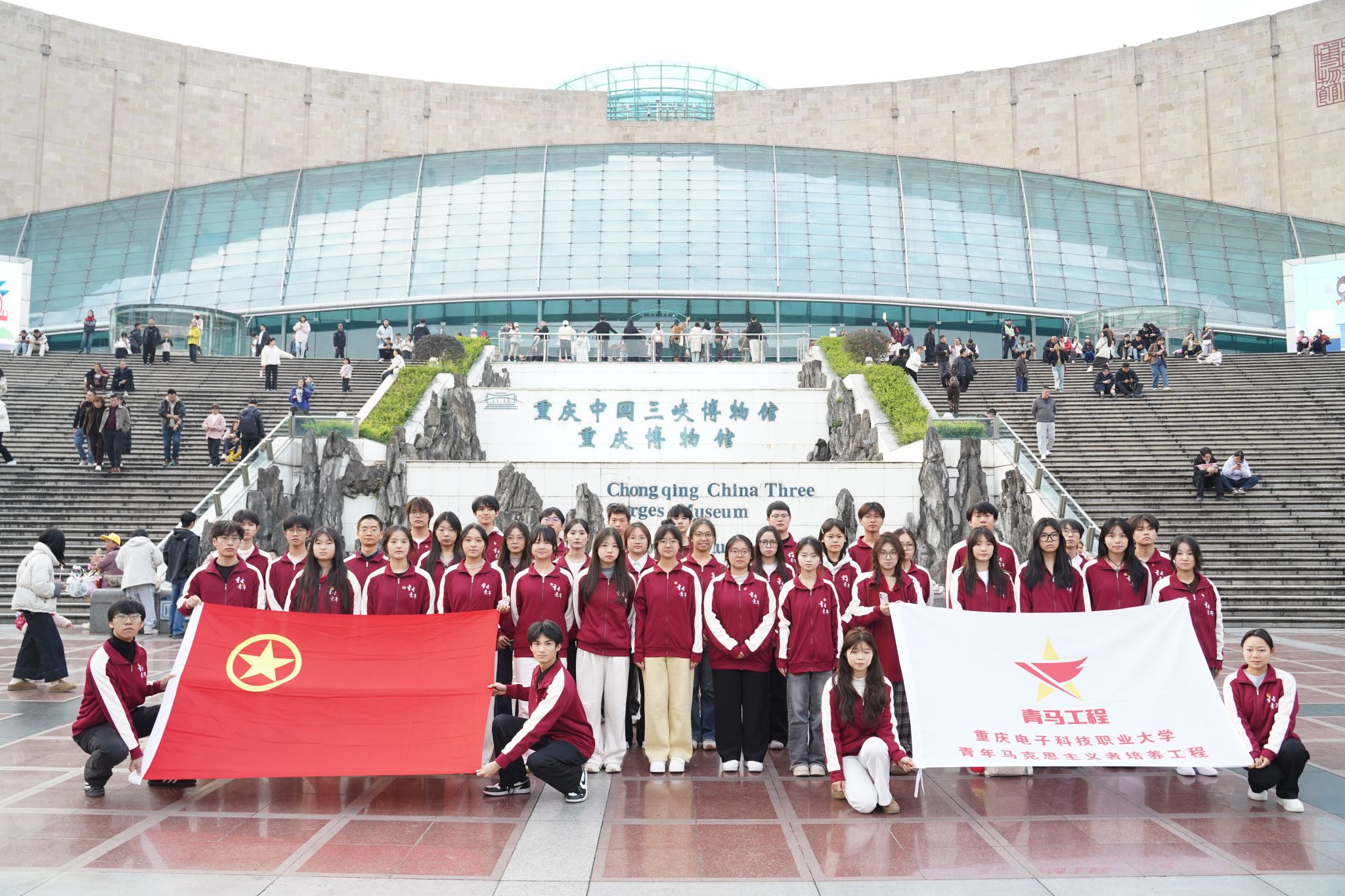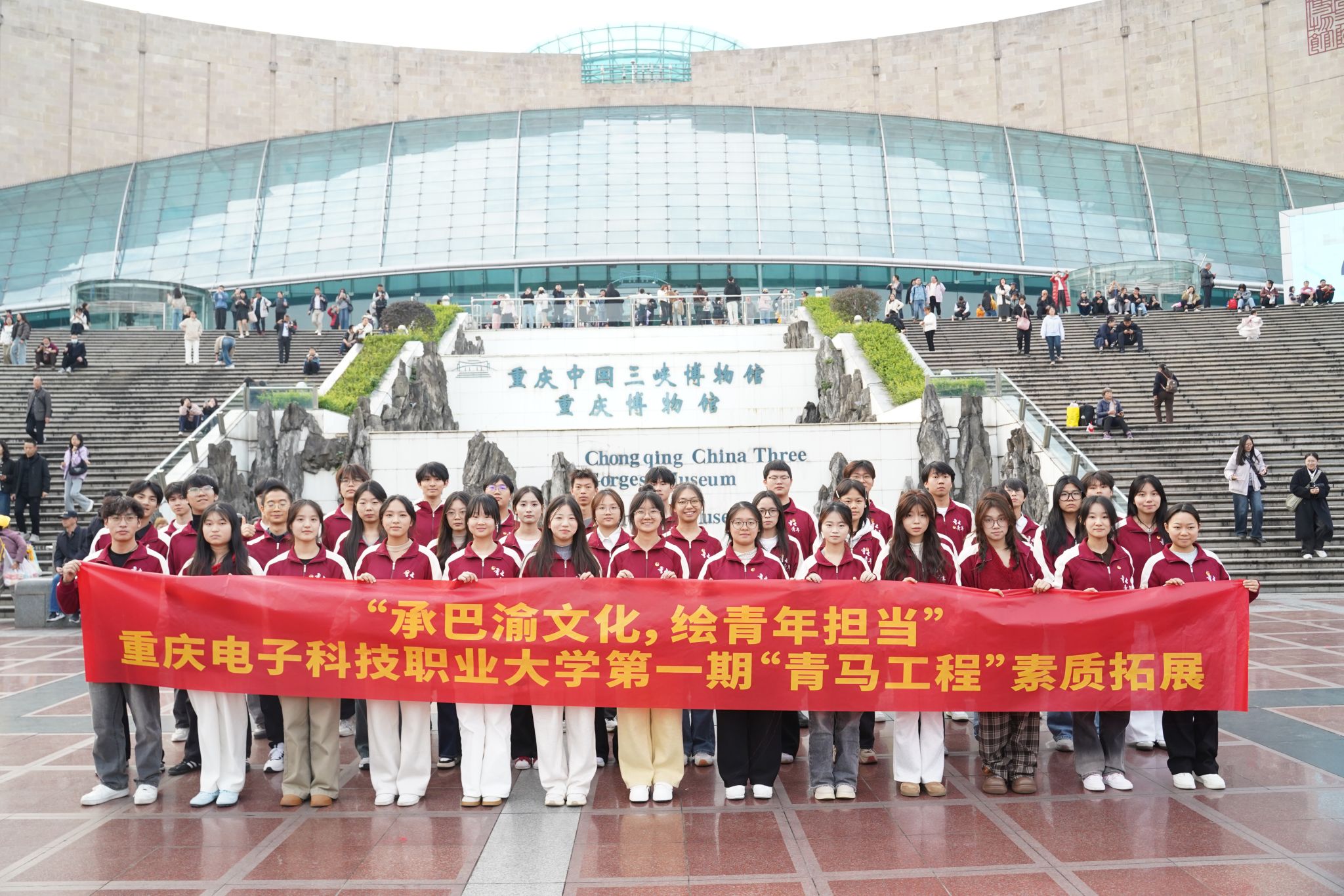 为深入学习贯彻党的二十届四中全会精神,深化“用好红色资源,加强青少年理想信念教育”的实践要求,厚植青年学子的爱国情怀与文化底蕴。重庆电子科技职业大学于11月21日在重庆三峡博物馆开展以“承巴渝文化,绘青春担当”为主题的第二期“青马工程”素质拓展研学活动,此次活动共50余名青马学员参加。