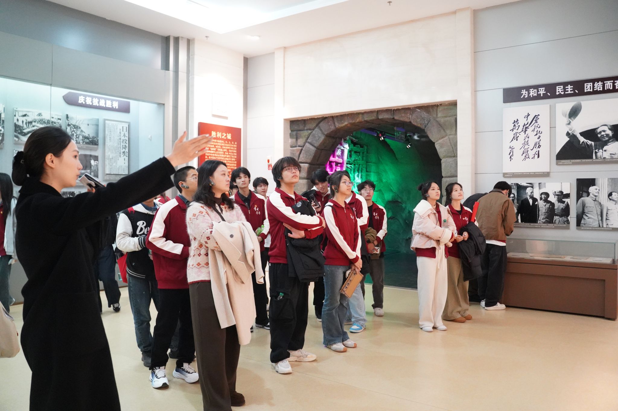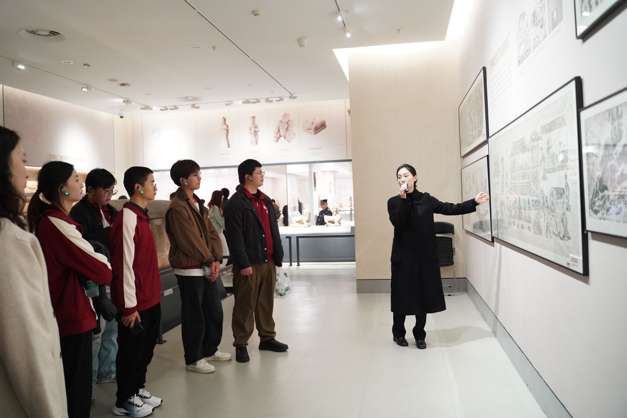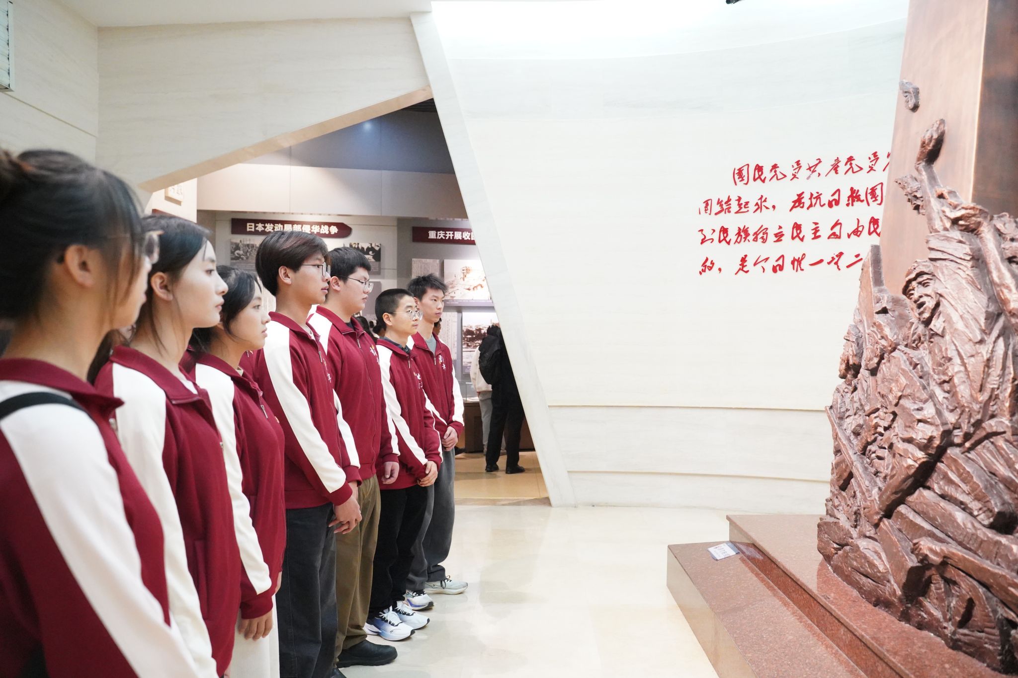 此次研学活动中,青马学员先后跟随讲解员参观了“汉代雕塑”“抗战岁月”两个展厅。汉代雕塑展厅内,陶俑、石刻等文物将学员带入古代艺术殿堂。大家通过观赏展品、聆听解读,领略汉风汉韵,感受中华文化的博大精深与绵延生命力,增强文化自信。随后,学员们走进“抗战岁月”展厅,泛黄书信、斑驳武器等珍贵文物,生动展现了中华民族不屈不挠的抗战精神,让大家深刻体悟“天下兴亡,匹夫有责”责任担当。讲解结束后,学员们通过 40 分钟自由参观,进一步感悟中华优秀传统文化魅力与红色历史底蕴。
